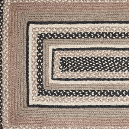 The Sawyer Mill Charcoal Creme Rectangle Jute Rug makes a textured addition to your farmhouse home decor; This 24x36 inch rug showcases beautiful concentric braids of khaki, charcoal, and dark creme; Durable machine stitching holds the braiding together even with the increased wear and tear from constant use; Includes a separate 100% PVC rug pad that works on most floor types for non-slip quality.
