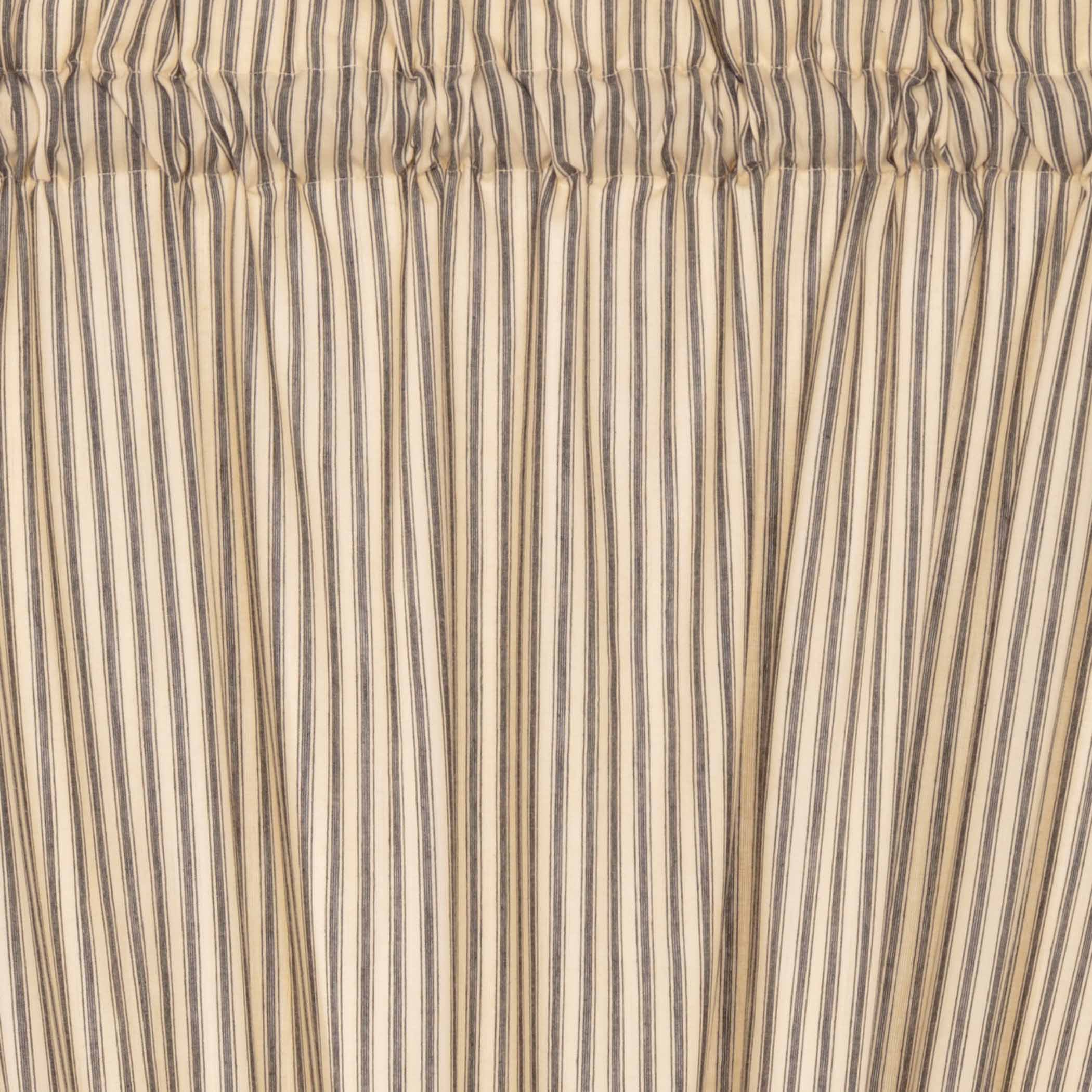 - Farmhouse Style - The unique ticking stripe style and neutral colors of this farmhouse curtain bring a cozy feel to your windowed doors. Complete the look of your cozy country-style abode with matching farmhouse kitchen tabletop accessories from our Sawyer Mill Charcoal collection.