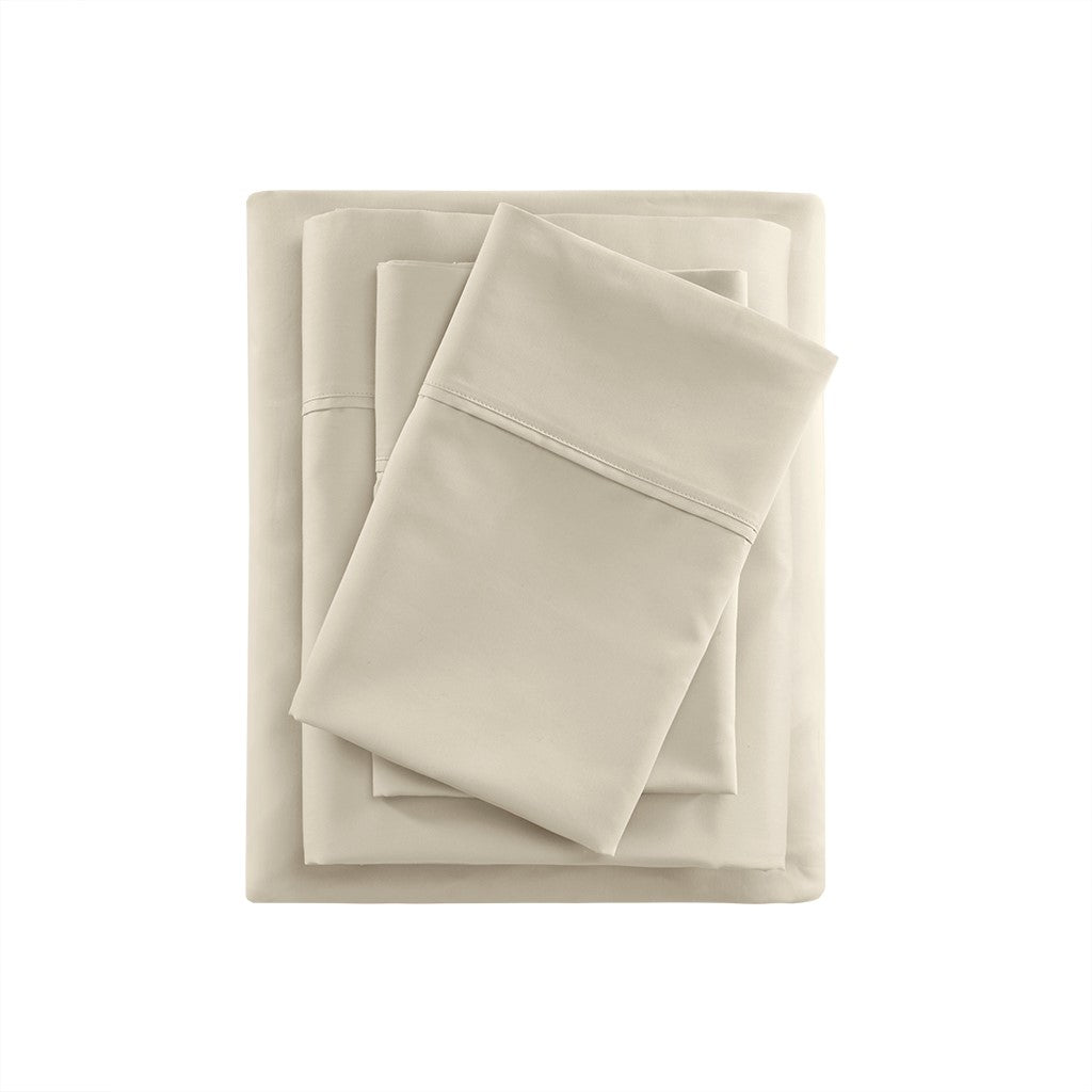 400 Thread Count Wrinkle Resistant Cotton Sateen Sheet Set - Ivory - Full Size