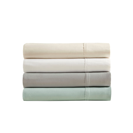 Sleep soundly in the comfort of the Beautyrest 400 Thread count wrinkle resistant cotton blend sateen sheet set. This wrinkle resistant sheet set is made from cotton blend sateen with low pilling for longevity and comfort. The fitted sheet features a 1-inch elastic band fully around the edge which keeps the sheet in place. Machine washable for easy care, this cotton sheet set is color-bleach safe and brings a casual comfort to your bedroom. These sheets have an antimicrobial treatment for health and wellness - kills and prevents bacteria buildup, helps reduce odors, and enhance hygiene. Our sheets go through a very light brushing process that gives them an incredible peach-like feel against your skin. If you've wanted to try cotton sateen sheets in the past, but have been put off by their crisp hand then this sheet is definitely for you. Made from sateen weave, these cotton sheets are smooth and rustle when you roll into the bed. These sheets are also OEKO-TEX certified, meaning they do not contain any harmful substances or chemicals, ensuring quality comfort and wellness. Set includes: 1 Flat Sheet, 1 Fitted Sheet, and 2 Pillowcases.