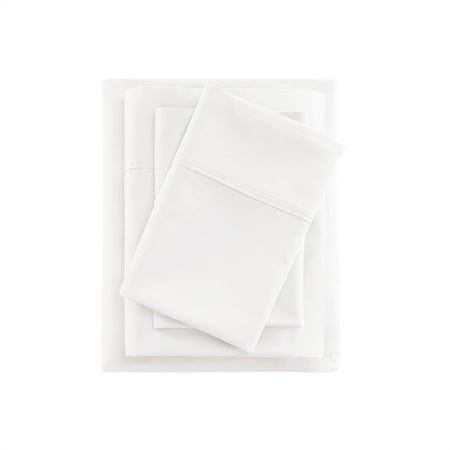 400 Thread Count Wrinkle Resistant Cotton Sateen Sheet Set - White - Full Size
