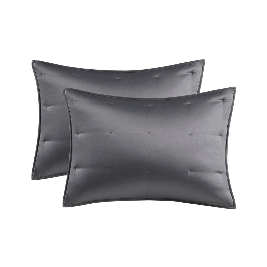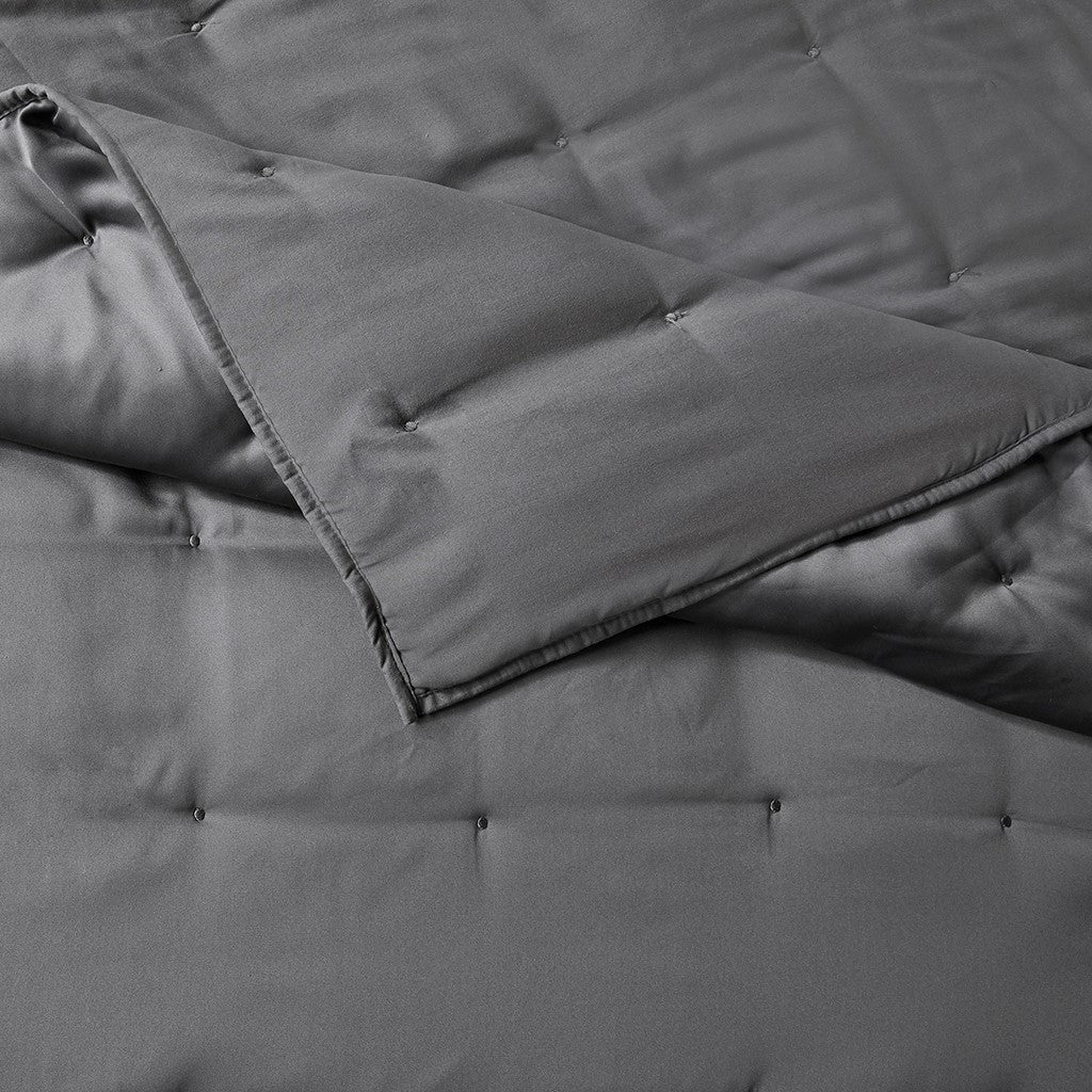 Add an elegant touch to your bedroom decor with the Beautyrest Ames 3 Piece Charmeuse Coverlet Set. The grey charmeuse coverlet is soft to touch and uses a quilted embroidered dot pattern to secure the hypoallergenic polyester filling. Matching shams pair beautifully with the coverlet and complete the look to this bedding set. Machine washable for easy care, this charmeuse coverlet can be used alone or layered with other bedding for extra warmth.
