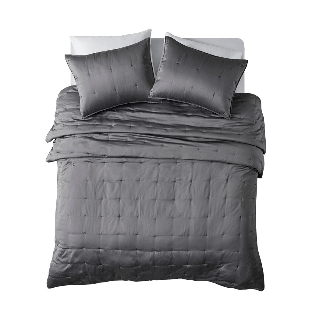 Ames 3 Piece Charmeuse Coverlet set - Grey - Full Size / Queen Size