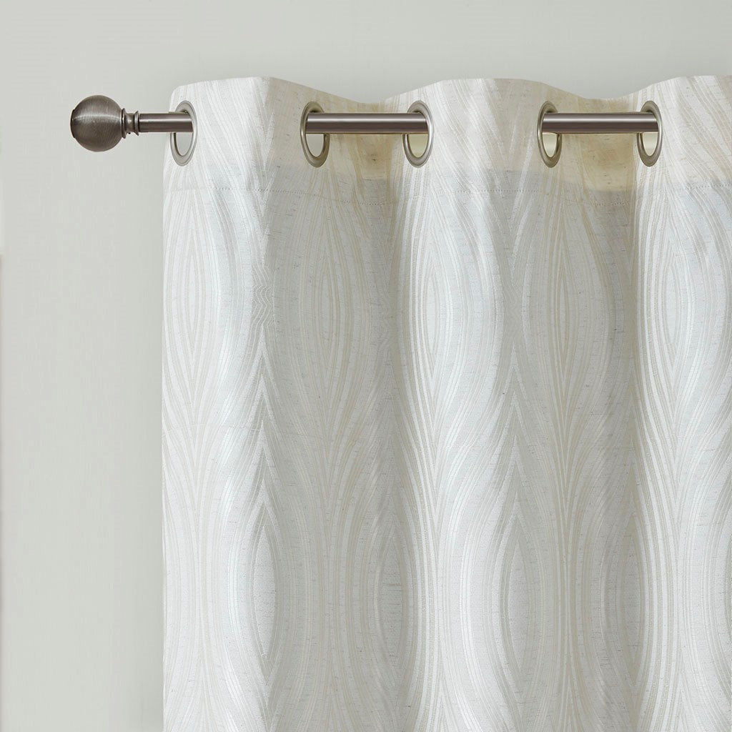 Add style and privacy to your home with the Beautyrest Cannes Ogee Jacquard Total Blackout Magnetic Closure Panel Pair. These ivory curtains feature a beautiful tonal ogee pattern, while the light weight woven jacquard fabric provides a rich texture and light luster for chic and transitional update. Each window panel features a total blackout thermal liner for energy efficiency and maximum energy savings, while the magnetic closures on each panel also ensure the curtains stay join together, blocking out all outside light and noise intrusion for the highest level of privacy, making these perfect for your bedroom or media room. Achieving the OEKO-TEX certification, these curtains do not contain any harmful substances or chemicals, for the best in quality comfort and wellness. Finished with silver grommet tops that fit up to a 1.25 inch diameter rod; each curtain is machine washable for easy care. Complete the look with other coordinating patterns in the Beautyrest window collection, available and sold separately; simply style by layering pairs together to cover large windows/doors or hang pairs separately throughout your home for a cohesive look.