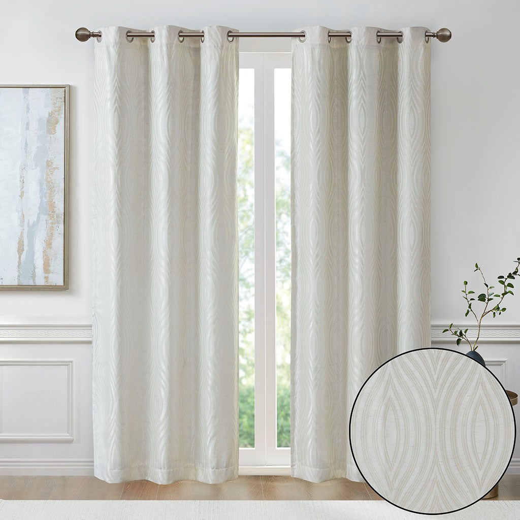 Cannes Ogee Jacquard Total Blackout Magnetic Closure Panel Pair - Ivory - 84" Panel