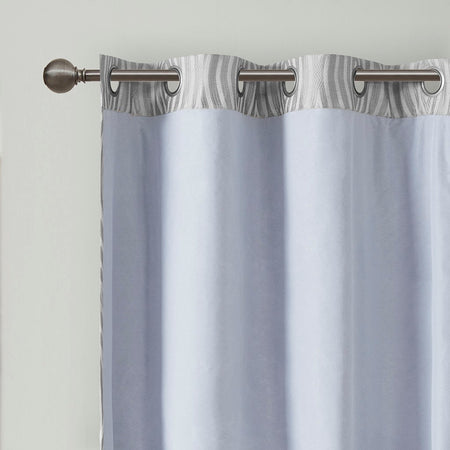 Add style and privacy to your home with the Beautyrest Cannes Ogee Jacquard Total Blackout Magnetic Closure Panel Pair. These silver curtains feature a beautiful tonal ogee pattern, while the light weight woven jacquard fabric provides a rich texture and light luster for chic and transitional update. Each window panel features a total blackout thermal liner for energy efficiency and maximum energy savings, while the magnetic closures on each panel also ensure the curtains stay join together, blocking out all outside light and noise intrusion for the highest level of privacy, making these perfect for your bedroom or media room. Achieving the OEKO-TEX certification, these curtains do not contain any harmful substances or chemicals, for the best in quality comfort and wellness. Finished with silver grommet tops that fit up to a 1.25 inch diameter rod; each curtain is machine washable for easy care. Complete the look with other coordinating patterns in the Beautyrest window collection, available and sold separately; simply style by layering pairs together to cover large windows/doors or hang pairs separately throughout your home for a cohesive look.