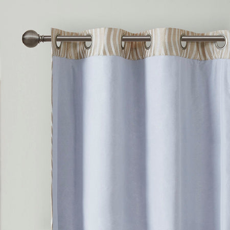Add style and privacy to your home with the Beautyrest Cannes Ogee Jacquard Total Blackout Magnetic Closure Panel Pair. These taupe curtains feature a beautiful tonal ogee pattern, while the light weight woven jacquard fabric provides a rich texture and light luster for chic and transitional update. Each window panel features a total blackout thermal liner for energy efficiency and maximum energy savings, while the magnetic closures on each panel also ensure the curtains stay join together, blocking out all outside light and noise intrusion for the highest level of privacy, making these perfect for your bedroom or media room. Achieving the OEKO-TEX certification, these curtains do not contain any harmful substances or chemicals, for the best in quality comfort and wellness. Finished with silver grommet tops that fit up to a 1.25 inch diameter rod; each curtain is machine washable for easy care. Complete the look with other coordinating patterns in the Beautyrest window collection, available and sold separately; simply style by layering pairs together to cover large windows/doors or hang pairs separately throughout your home for a cohesive look.