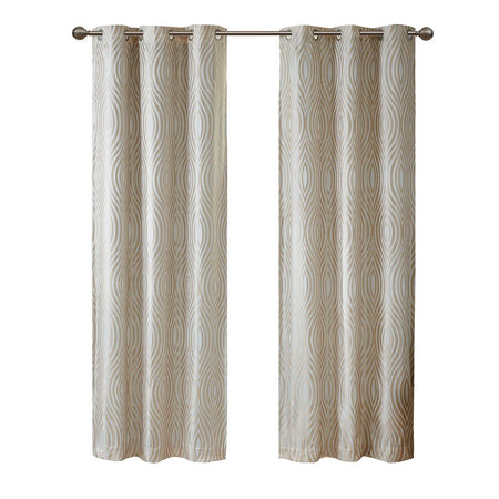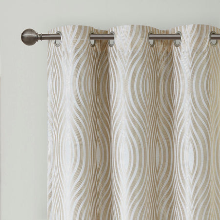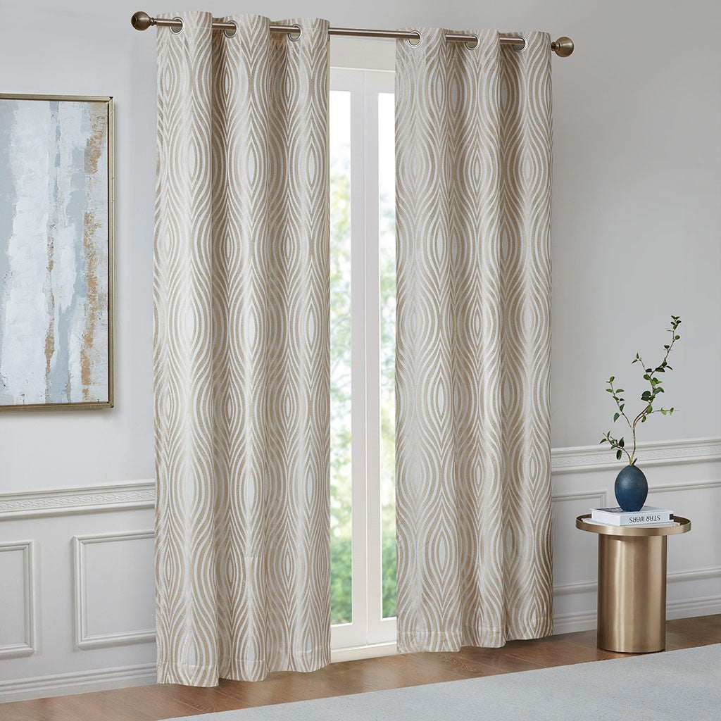 - Ogee jacquard woven grommet top curtain panel pair