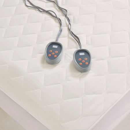 Sleep in warmth and comfort with the Beautyrest 100% Cotton Heated Mattress Pad. Using Secure Comfort Technology, this electric mattress pad features 20 heat settings that provide maximum warmth and comfort as well as a 10-hour shut-off timer for safety. The 100% polyester and hypoallergenic filling offers soft and clean comfort, while fitting mattress up to 21-inches deep. Virtually eliminating magnetic field emissions, this heated mattress pad is machine washable and provides excellent warmth, comfort, and safety through the night. Twin and Full sizes come with 1 controller and Queen and King sizes come with 2 controllers. Comes with manufacturer's 5-year warranty.