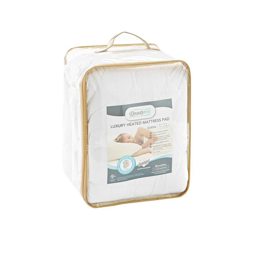 Our Beautyrest heated mattress pad contains Secure Comfort technology, which is designed to virtually eliminate Electromagnetic Field emissions. The soft flexible wires and quilted top ensure your comfort. The fitted skirt is designed to create a perfect fit and fits up to a 18" mattress. Our heated mattress pad is machine washable, with a 10 hour auto shut off, and 5 setting temperature control. Twin, Twin XL, and Full size have one controller, Queen, King , and Cal King size have 2 controllers. Includes manufacturer's 5-year warranty.
