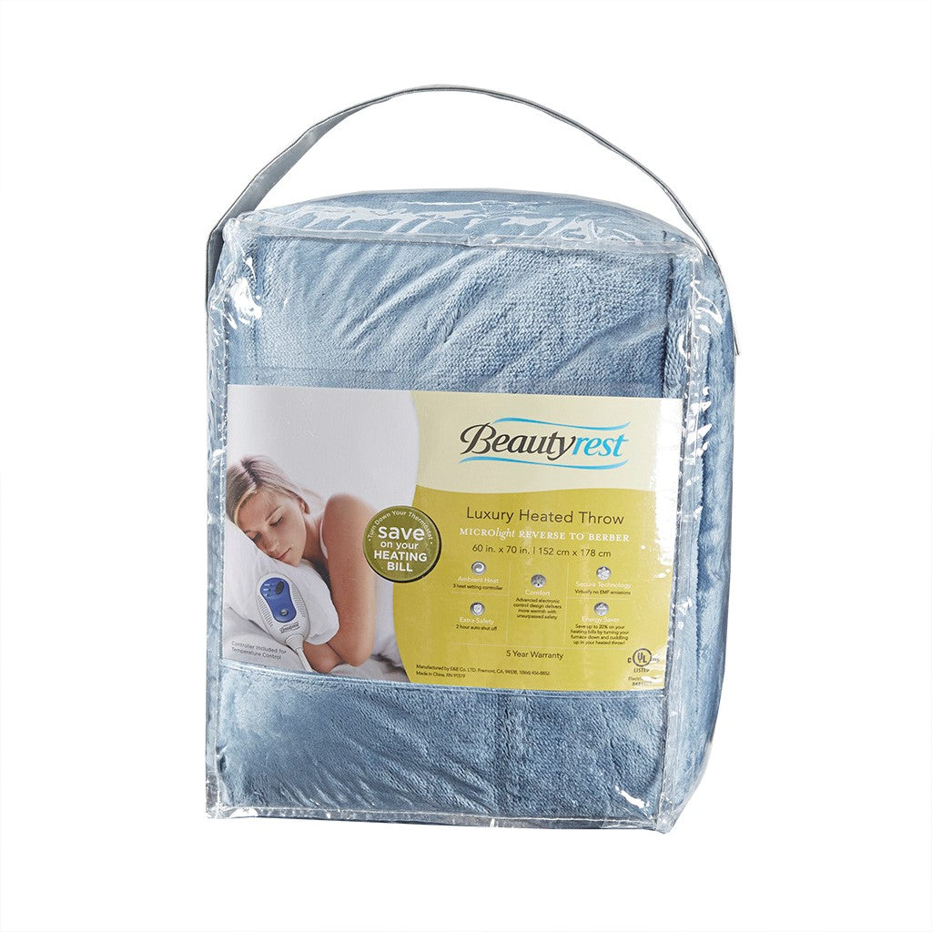 Immerse yourself in comfort in the BeautyRest Heated Microlight reverse to Berber Throw. This heated throw utilizes state of the art Secure Comfort technology that adjusts the temperature of your blanket based on overall temperature, spot temperatures and the ambient temperature of your room, ensuring a consistent flow of warmth. This unique technology also emits virtually no electromagnetic field emissions, so you can snuggle up with confidence. This throw is oversized, nearly a foot larger in the length and width compared to standard heated throws. The ultra soft microlight plush fabric combines with billowy berber in this cozy, comfortable throw. Features 3 heat settings and 2 hour auto shut off. This throw is machine washable for easy care and OEKO-TEX certified, meaning it does not contain any harmful substances or chemicals to ensure quality comfort and wellness. Includes manufacturer's 5-year warranty.