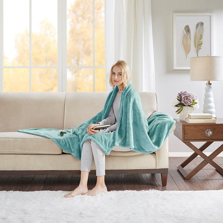 Heated Plush Plush Heated Throw - Aqua - 60x70"