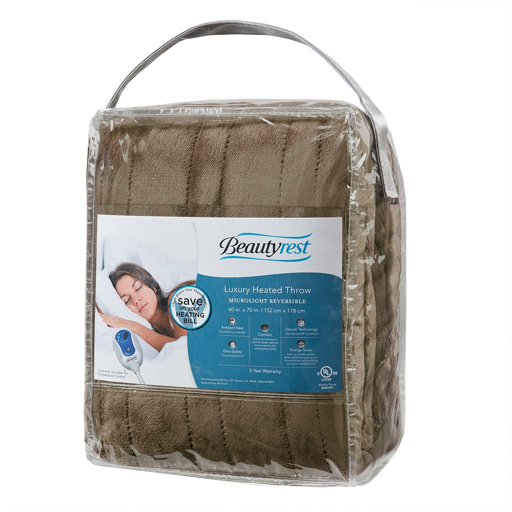 Our heated throw utilizes state of the art Secure Comfort heated technology that adjusts the temperature of your throw based on overall temperature, spot temperatures and the ambient temperature of your room, ensuring a consistent flow of warmth. This unique technology also emits virtually no EMF emissions, so you can snuggle up with confidence. This throw is oversized, nearly a foot larger in the length and width compared to standard heated throws. The ultra soft microlight plush fabric creates a cozy, comfortable throw.It features 3 heat settings and 2 hour auto shut off. This throw is machine washable for easy care and OEKO-TEX certified, meaning it does not contain any harmful substances or chemicals to ensure quality comfort and wellness. Includes manufacturer's 5-year warranty.