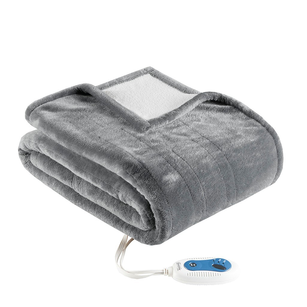 Heated Snuggle Plush to Berber Wrap - Grey - 50x64"
