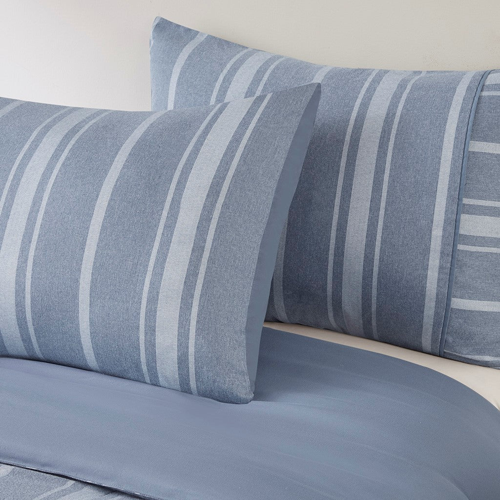Kent Striped Herringbone Oversized Comforter Set - Blue - King Size / Cal King Size