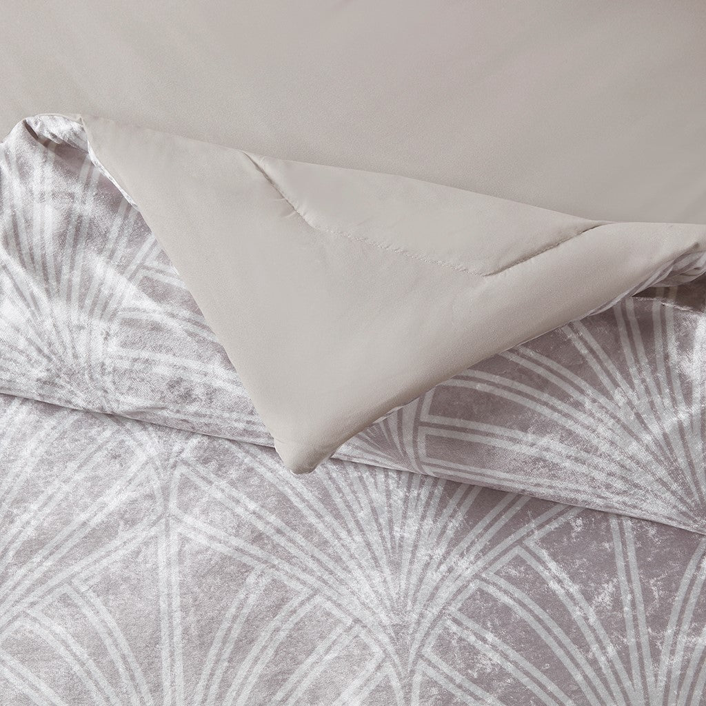 Comforter/Sham: 100% polyester crushed velvet print, reverse 100% polyester microfiber solid, poly fill, hidden bartacks. Pillow: 100% polyester cover with poly fill