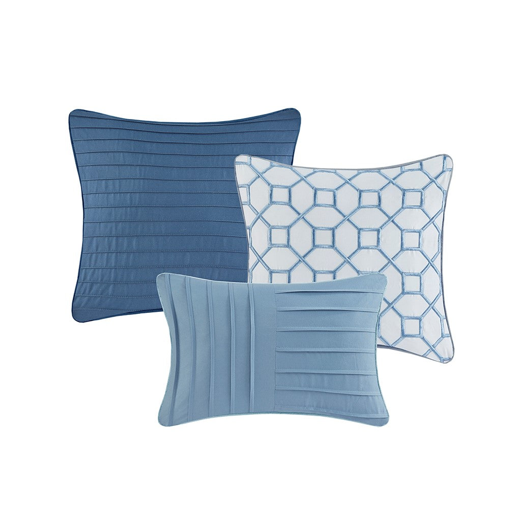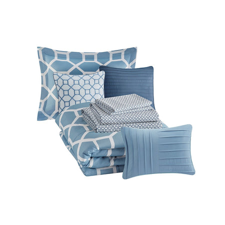 Nora 10 Piece Geometric Comforter Set with Bed Sheets - Blue - Queen Size