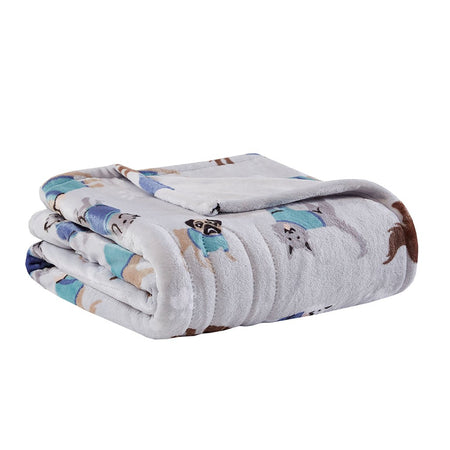 Oversized Plush Printed Heated Throw - Grey Dogs - 60x70"
