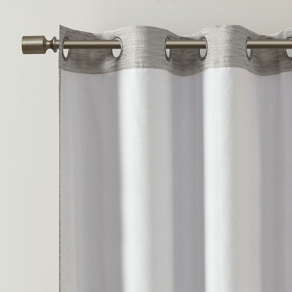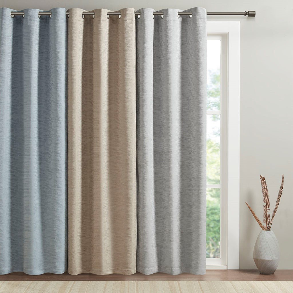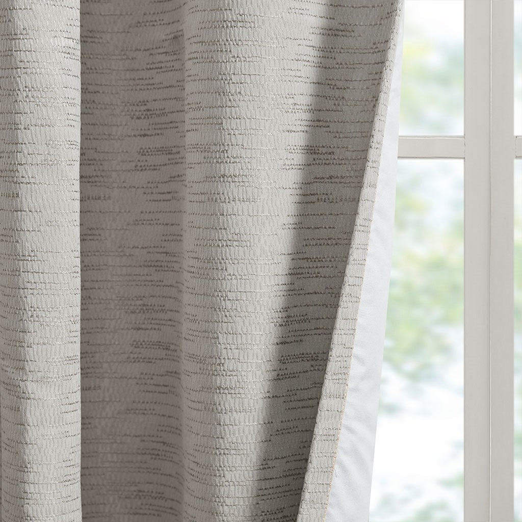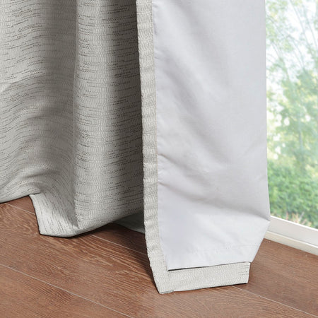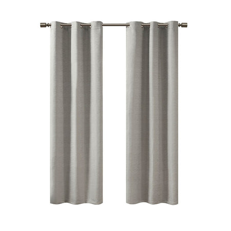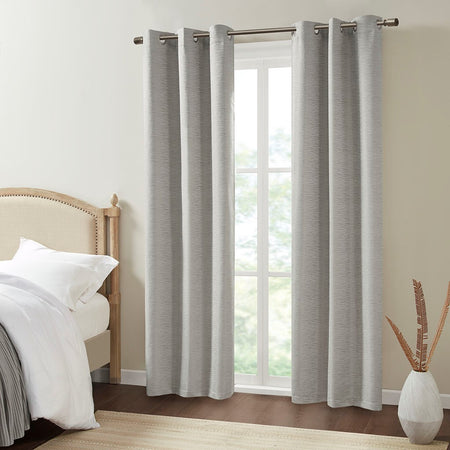 Create a relaxing space in your home with the Beautyrest Rocky Solid Textured Jacquard Total Blackout Magnetic Closure Panel Pair. This solid color curtain pair features a light sheen and beautiful texture from the jacquard woven fabric, for a subtle and stylish update. Using thermal technology, these curtains help provide maximum energy savings by keeping your room the perfect temperature throughout the year. While magnetic closures on each panel ensure the curtains stay join together, blocking out all outside light and noise intrusion for the highest level of privacy, making these perfect for your bedroom or media room. These blackout curtains are also OEKO-TEX certified, meaning they do not contain any harmful substances or chemicals, for quality comfort and wellness. Finished with silver grommet tops that fit up to a 1.25 inch diameter rod; curtains are also Machine washable for easy care. Complete the look with other coordinating patterns in the Beautyrest window collection, available and sold separately; simply style by layering pairs together to cover large windows/doors or hang pairs separately throughout your home for a cohesive look.