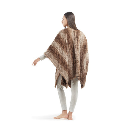 Zuri Faux Fur Heated Wrap with Built-in Controller - Brown - 50x64"