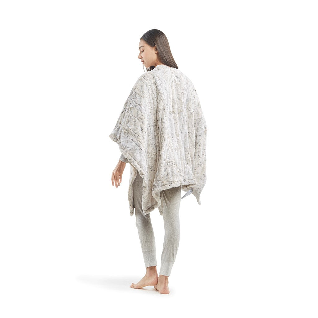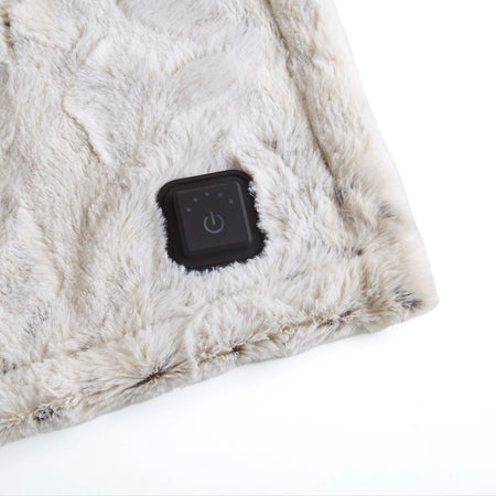 Zuri Faux Fur Heated Wrap with Built-in Controller - Snow Leopard - 50x64"