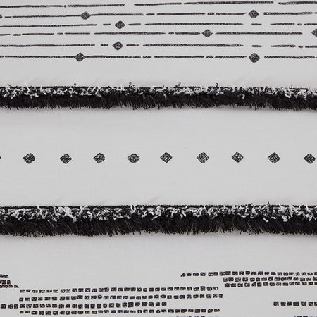 Give your bedroom a shabby chic update with the INK+IVY Cotton Printed Comforter Set with Trims. The 100% cotton comforter features a black stripe print with 6 rows of cotton tufted trims that add dimension to the charming boho look. Hidden bar tacks on the top of the comforter create a clean, duvet-like finish and the solid black reverse adds a bold touch to the design. Matching shams with 1-inch self-flanges and overlap closures on the back provide the finishing touches to this cotton comforter set. Items in the set may come in a rolled or compressed packaging, which will need to be fluffed up or steam ironed before use to remove wrinkles.
