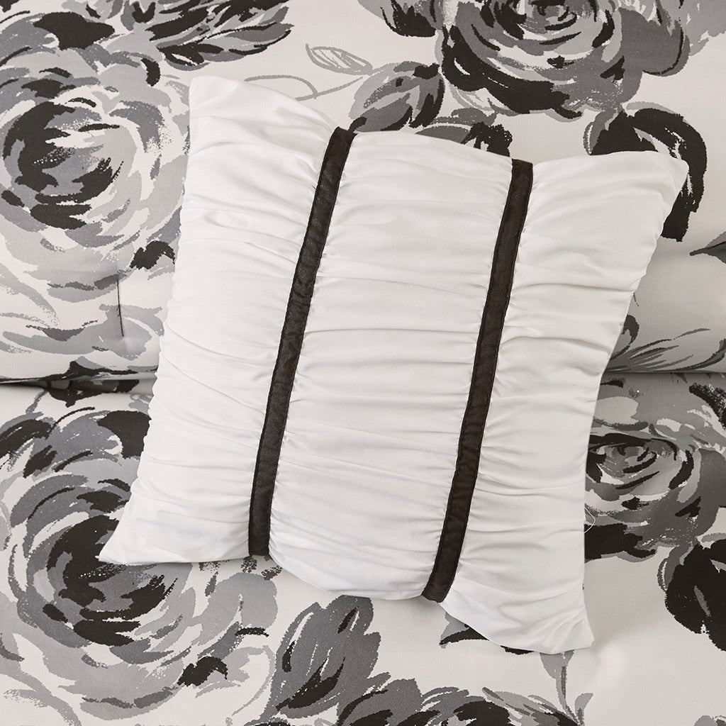 Dorsey Floral Print Comforter Set - Black / White - Twin Size / Twin XL Size