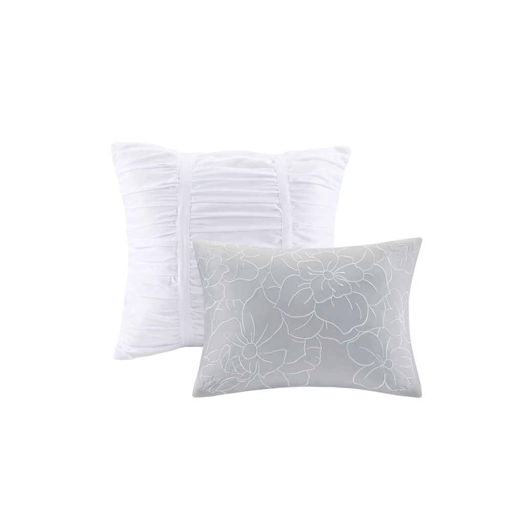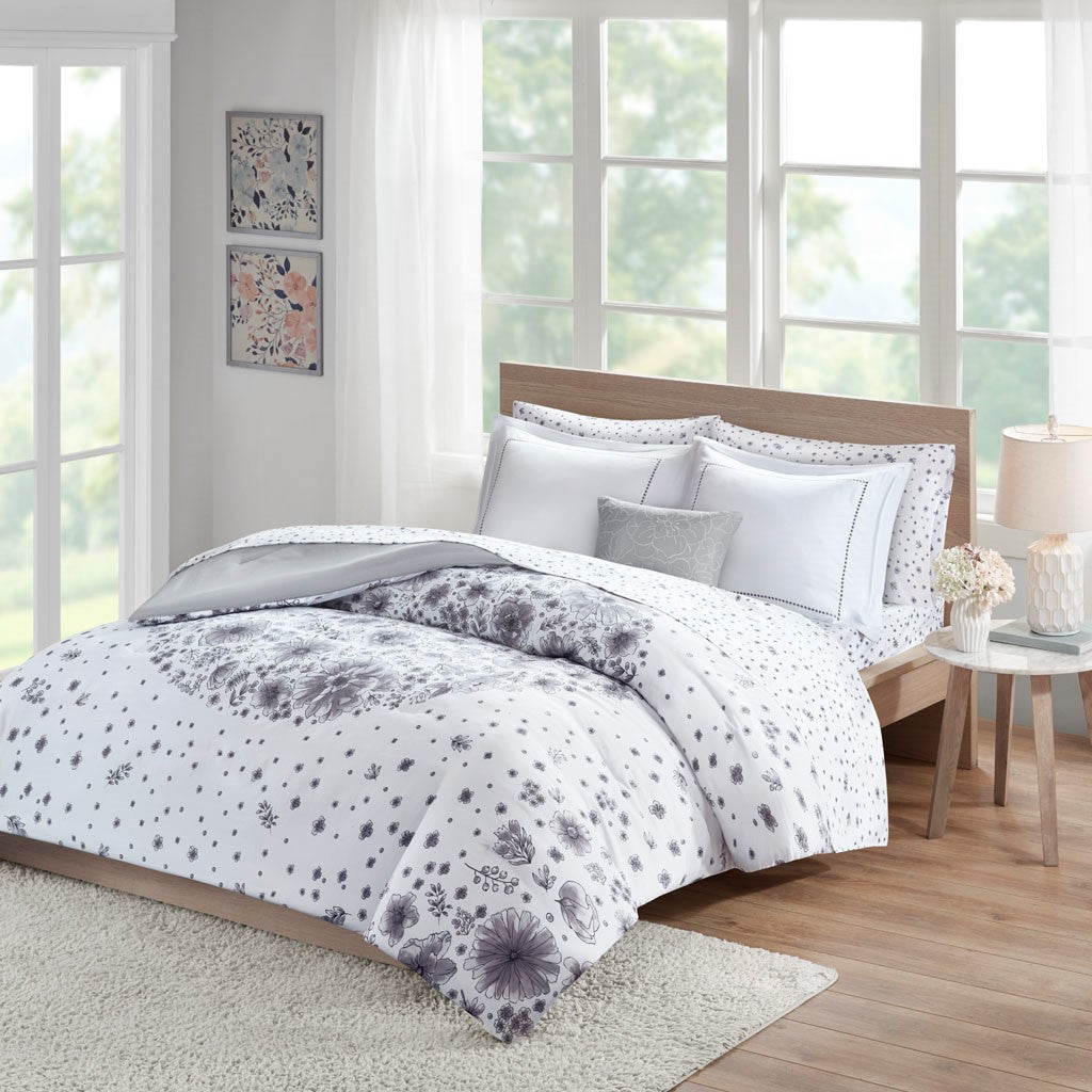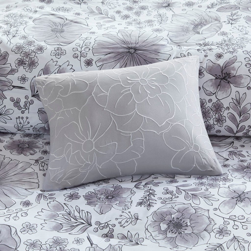 The Intelligent Design Emma Medallion Comforter Set with Bed Sheets offers a stunning globally inspired update for your bedroom. A large grey medallion panel print with a solid grey reverse creates a beautiful contrast on the white microfiber base fabric. Coordinating shams (1 in Twin/TwinXL) feature embroidered borders that pair perfectly with the comforter, while an oblong decorative pillow provides the finishing touch to this global inspired bedding set. An included matching sheet set comes with a flat sheet, fitted sheet, and pillowcases (1 in Twin/TwinXL) for a fully coordinated ensemble. This bedding set is also OEKO-TEX certified, meaning it does not contain any harmful substances or chemicals to ensure quality comfort and wellness.