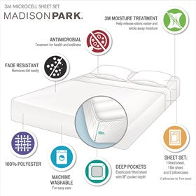 Wrap yourself in a cool and comfortable sleep with this all season moisture wicking deep pocket polyester sheet set. This soft and lightweight sheet set features 3M Scotchgard moisture treatment that wicks away moisture to keep you cool. Fade and stain resistant, this sheet set lasts wash after wash and is easy to clean. These microfiber sheets also have an antimicrobial treatment for health and wellness - kills and prevents bacteria buildup, helps reduce odors, and enhances hygiene. Our sheets go through a very light brushing process that gives them an incredible peach-like feel against your skin. These sheets are also OEKO-TEX certified, meaning they do not contain any harmful substances or chemicals, ensuring quality comfort and wellness.