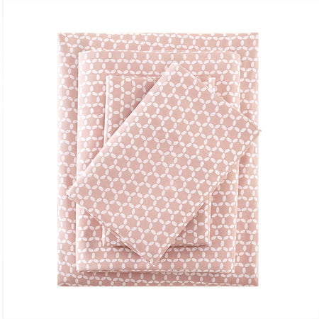 The Madison Park 3M Microcell Printed Sheet Set brings a chic blend of style and comfort for a fashionable update to your bed. This microcell sheet set is lightweight and features a geometric pattern that pairs easily with any bedroom space. A 3M Scotchgard Moisture Management Treatment wicks away moisture, resists stains, and lasts wash after wash to give you exceptional comfort all year long. This sheet set has an antimicrobial treatment for health and wellness - kills and prevents bacteria buildup, helps reduce odors, and enhances hygiene. These sheets are also OEKO-TEX certified, meaning they do not contain any harmful substances or chemicals, ensuring quality comfort and wellness. The deep pocket fitted sheet fits up to an 18-inch mattress depth. Set includes: 1 Flat Sheet, 1 Fitted Sheet, and 2 Pillowcases (1 in Twin/TwinXL).