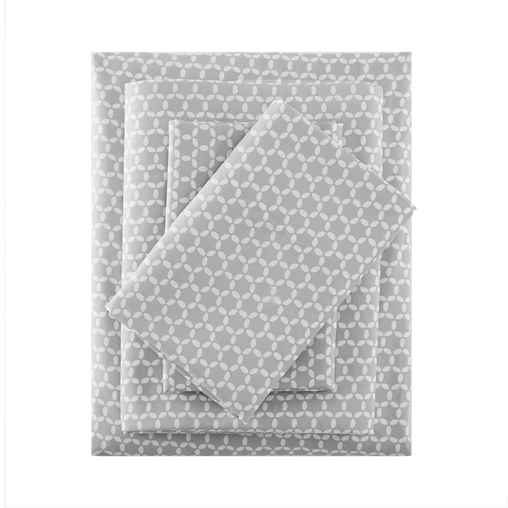 The Madison Park 3M Microcell Printed Sheet Set brings a chic blend of style and comfort for a fashionable update to your bed. This microcell sheet set is lightweight and features a geometric pattern that pairs easily with any bedroom space. A 3M Scotchgard Moisture Management Treatment wicks away moisture, resists stains, and lasts wash after wash to give you exceptional comfort all year long. This sheet set has an antimicrobial treatment for health and wellness - kills and prevents bacteria buildup, helps reduce odors, and enhances hygiene. These sheets are also OEKO-TEX certified, meaning they do not contain any harmful substances or chemicals, ensuring quality comfort and wellness. The deep pocket fitted sheet fits up to an 18-inch mattress depth. Set includes: 1 Flat Sheet, 1 Fitted Sheet, and 2 Pillowcases (1 in Twin/TwinXL).
