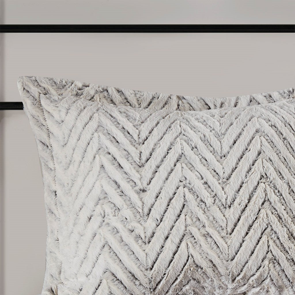 Add a casual and irresistibly soft touch to your bedroom with Madison Park's Adelyn Ultra Plush Down Alternative Comforter Set. Brushed long fur on the face of the comforter flaunts a chevron pattern that is highlighted by darker shades to create additional depth. The down alternative filling provides a superior layer warmth and comfort. A matching sham spreads the ultra-soft texture to the head of the bed and features a two inch flange for added charm. Easy to care for, this plush comforter set is machine washable and offers a cozy feel to your space and is also OEKO-TEX certified, meaning it does not contain any harmful substances or chemicals to ensure quality comfort and wellness. Items in the set may come in a rolled or compressed packaging, which will need to be fluffed up or steam ironed before use to remove wrinkles.