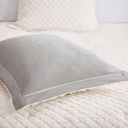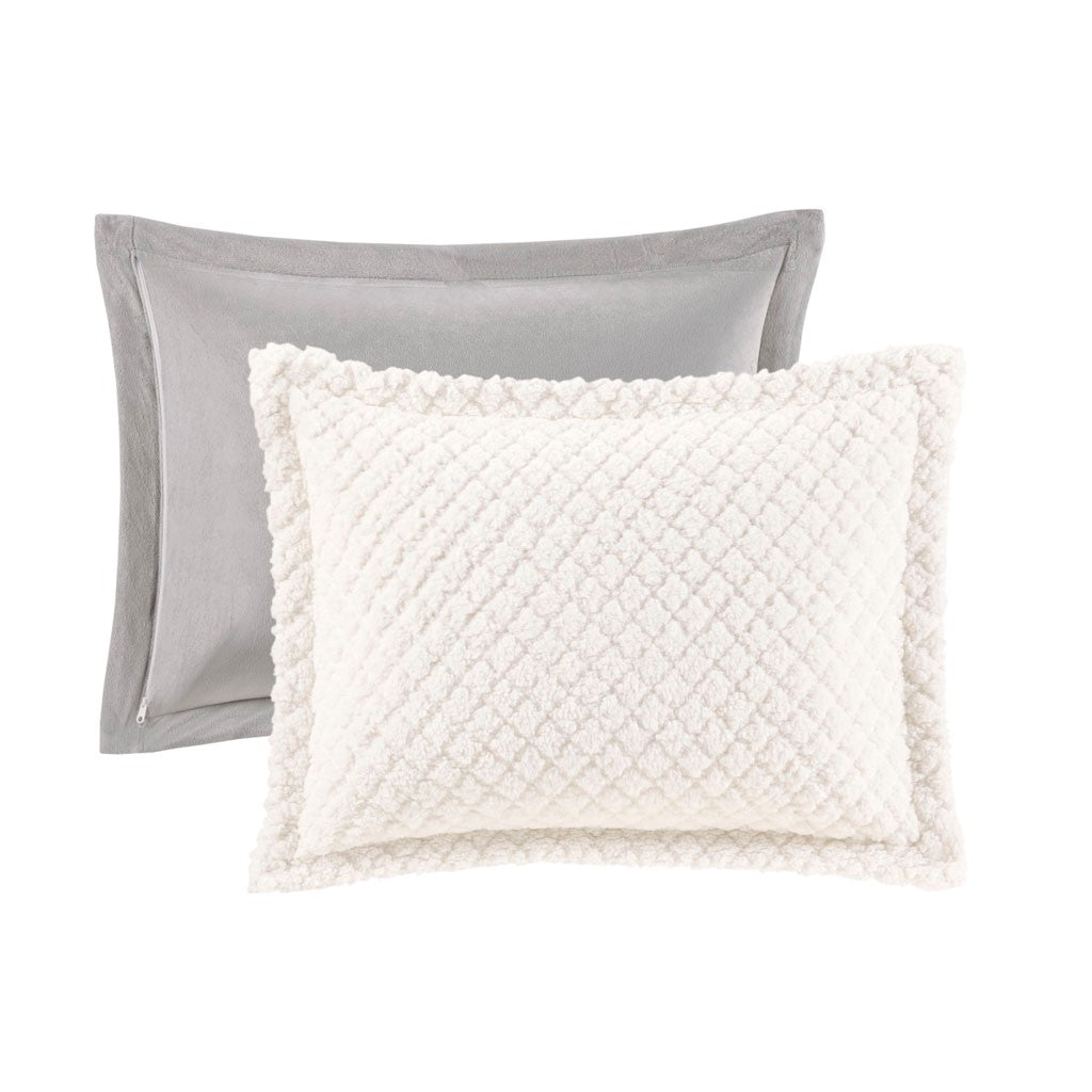 Sleep in pure comfort with the Madison Park Adler Reversible Textured Sherpa & Faux Mink Comforter Set. The cozy comforter features an embossed ivory sherpa fabric on the face with a soft grey faux mink on the reverse, creating incredible warmth and soft textured feel. The matching shams (1 for Twin Sizes) mirror the design of the comforter and have zipper closures to easily secure your pillows. Hypoallergenic polyester filling inside the comforter provides exceptional warmth and comfort. Machine washable for easy care, this reversible comforter set brings the perfect amount of cozy comfort and style to your bedroom decor. This comforter set is also OEKO-TEX certified, meaning it does not contain any harmful substances or chemicals to ensure quality comfort and wellness.