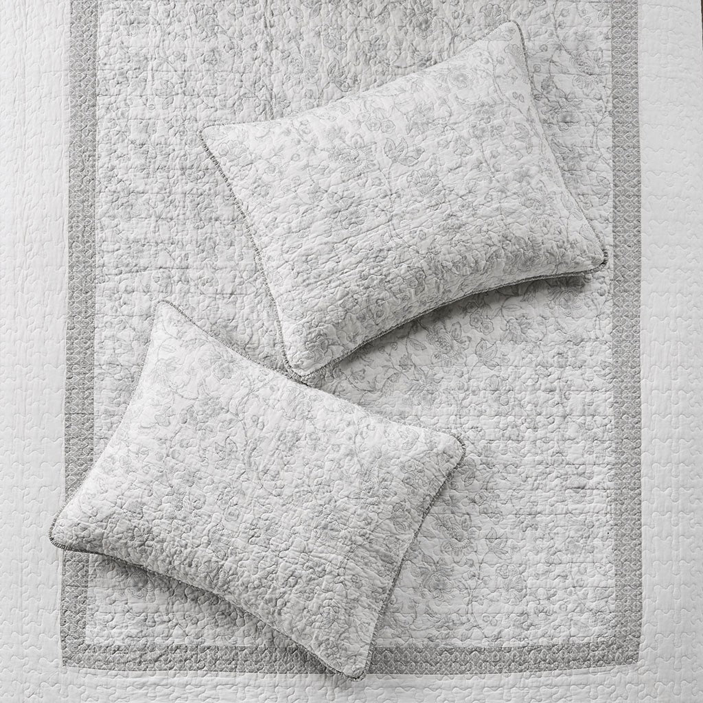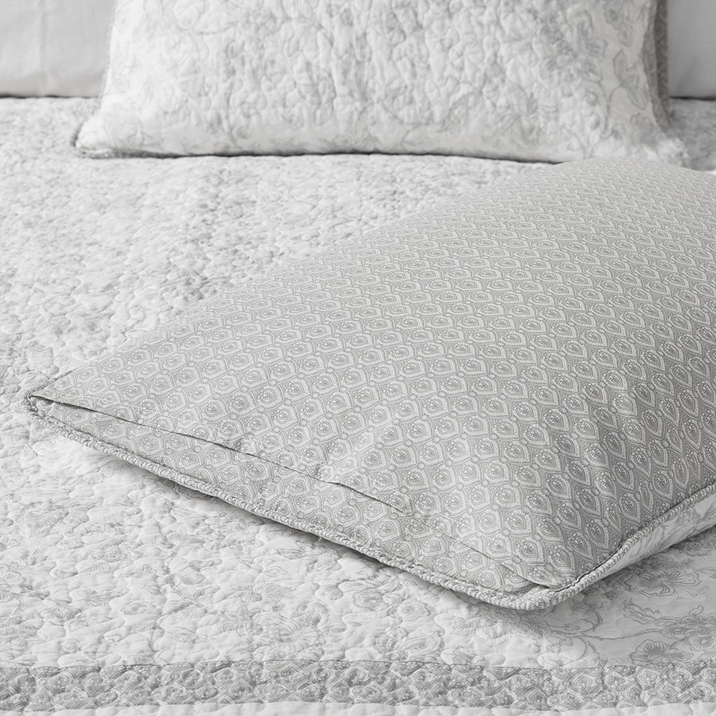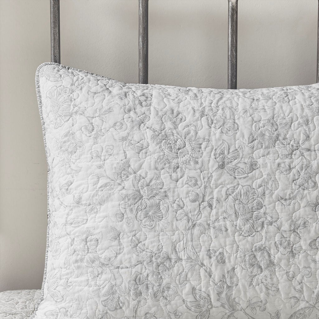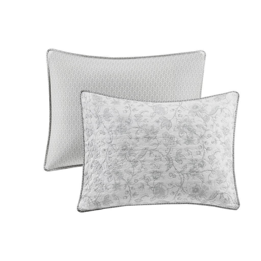 Give your bedroom a soft and cozy farmhouse update with the Madison Park Amber 3 Piece Coverlet Set. This reversible coverlet features a grey paisley print with a solid cream border to create a 2-tone charming cottage look. The 2 matching shams also showcase a paisley print to pair perfectly with the quilted coverlet. Machine washable for easy care, this reversible coverlet set is perfect for use in the summer time or as an extra layer to keep you warm in the winter. This farmhouse coverlet also has an antimicrobial treatment provides built-in freshness protection, inhibits growth of odor causing bacteria, and keeps the fabric newer, longer.