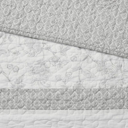 Amber 3 Piece Reversible Cotton Coverlet Set - Cream / Grey - King Size / Cal King Size