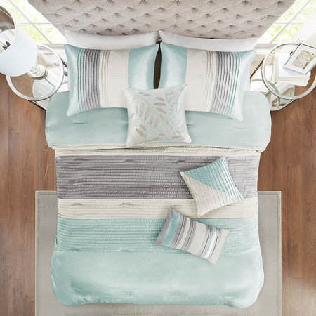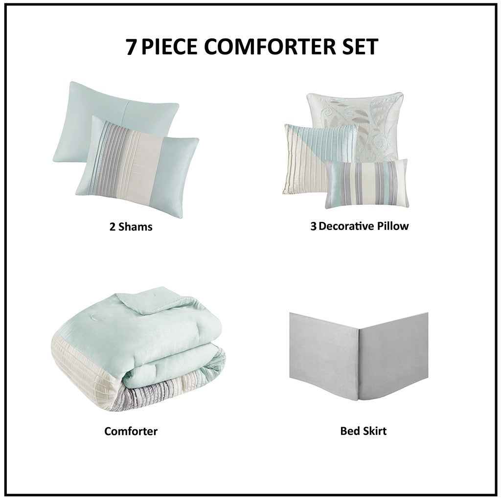 Amherst 7 Piece Comforter Set - Aqua - Cal King Size