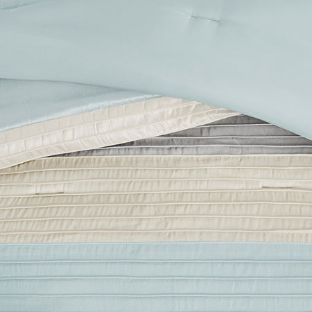 - Transitional style 7 piece comforter set in pintucking and embroidery details