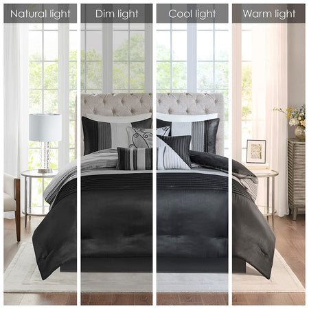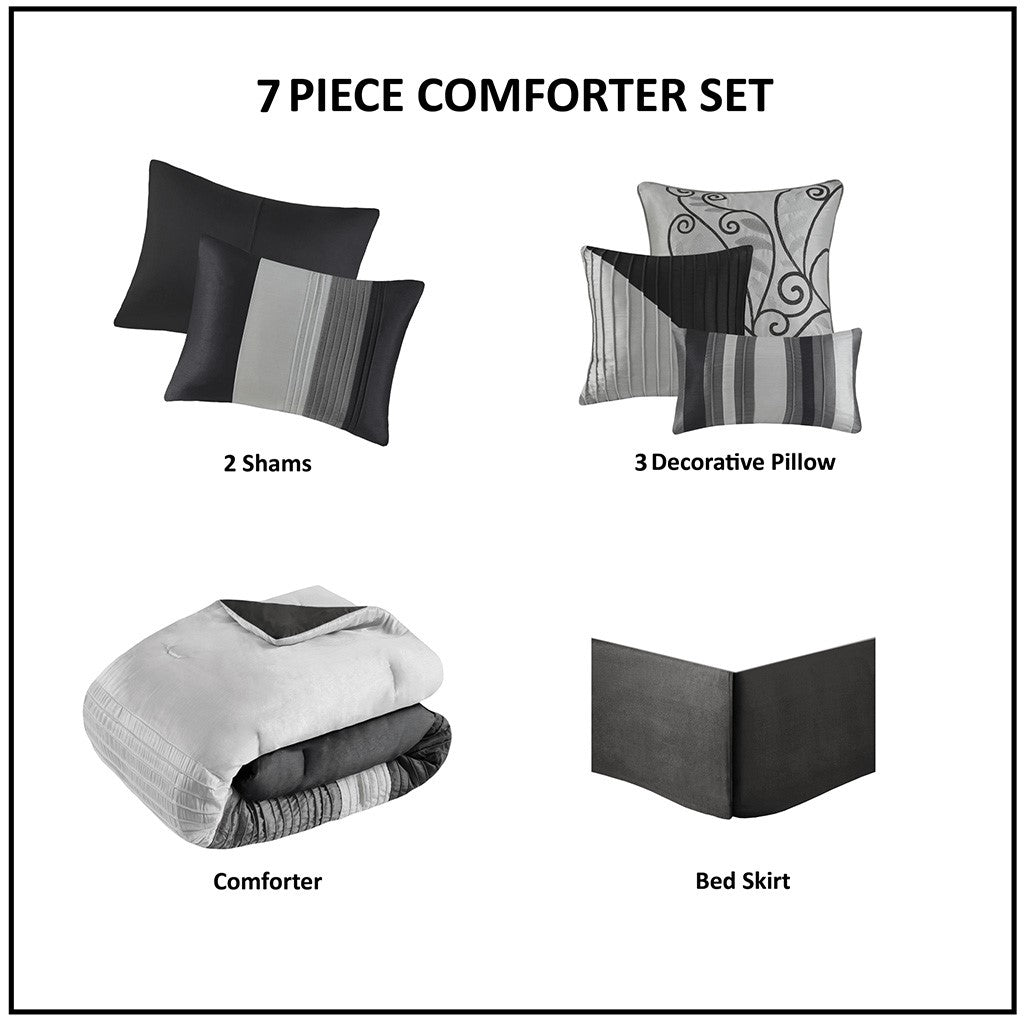 - Transitional style 7 piece comforter set in pintucking and embroidery details