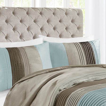 - Transitional style 7 piece comforter set in pintucking and embroidery details