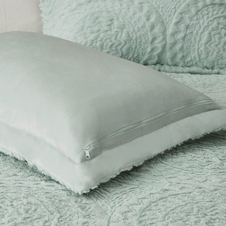 Arya Embroidered Medallion Faux Fur Ultra Plush Comforter Mini Set - Aqua - Twin Size