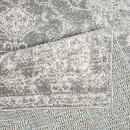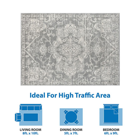 Soften your space with the Madison Park Asher Distressed Medallion Cream and Grey Woven Area Rug. Made in Turkey, this area rug features a boho-inspired medallion pattern in soft shades of cream and grey for a traditional, yet casual look. The soft, medium pile makes the woven rug well suited for high traffic areas, while the transparent sprayed latex reverse helps keep the rug from sliding. A rug pad is still highly recommended to keep the rug in place. Stain and fade resistant, this woven area rug is OEKO-TEX certified, meaning it does not contain any harmful substances or chemicals to ensure quality comfort and wellness. Rug is available in multiple sizes, which makes it perfect for your living room, family room, or entryways. To clean, use a vacuum or spot clean.