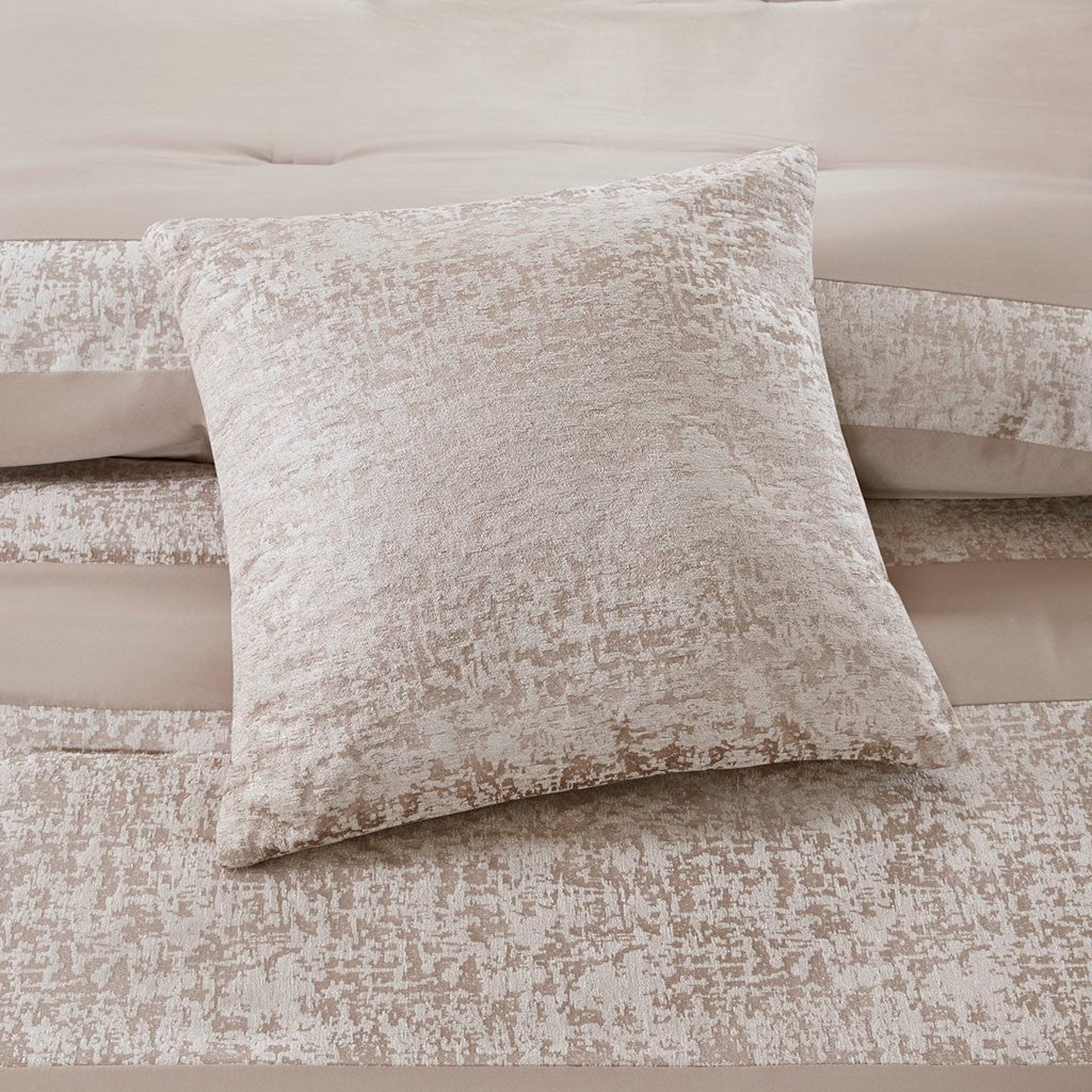 Ava 7 Piece Chenille Jacquard Comforter Set - Taupe - King Size