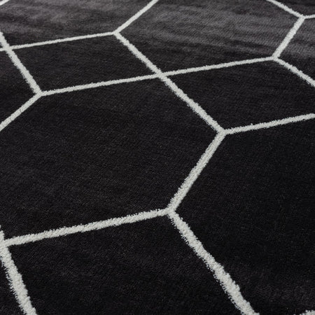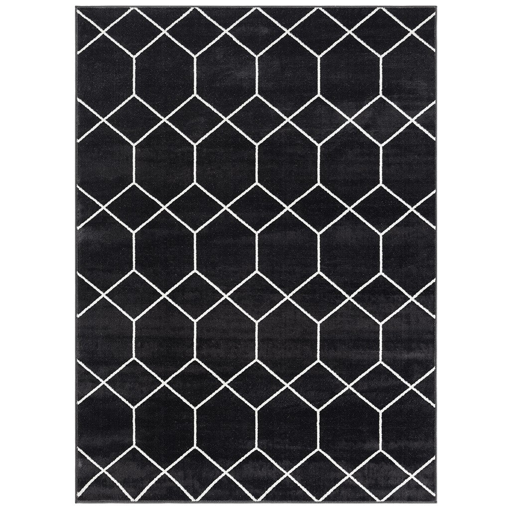 Elevate your home with the modern flair of Madison Park's Averie Trellis Geometric Black and Cream Woven Area Rug. Made in Turkey, this area rug features a black and cream geometric trellis pattern creating a bold contrasting look. The soft, medium pile makes the woven rug well suited for high traffic areas, while the transparent sprayed latex reverse helps keep the rug from sliding. A rug pad is still highly recommended to keep the rug in place. Stain and fade resistant, this woven area rug is OEKO-TEX certified, meaning it does not contain any harmful substances or chemicals to ensure quality comfort and wellness. Rug is available in multiple sizes, which makes it perfect for your living room, family room, or entryways. To clean, use a vacuum or spot clean.