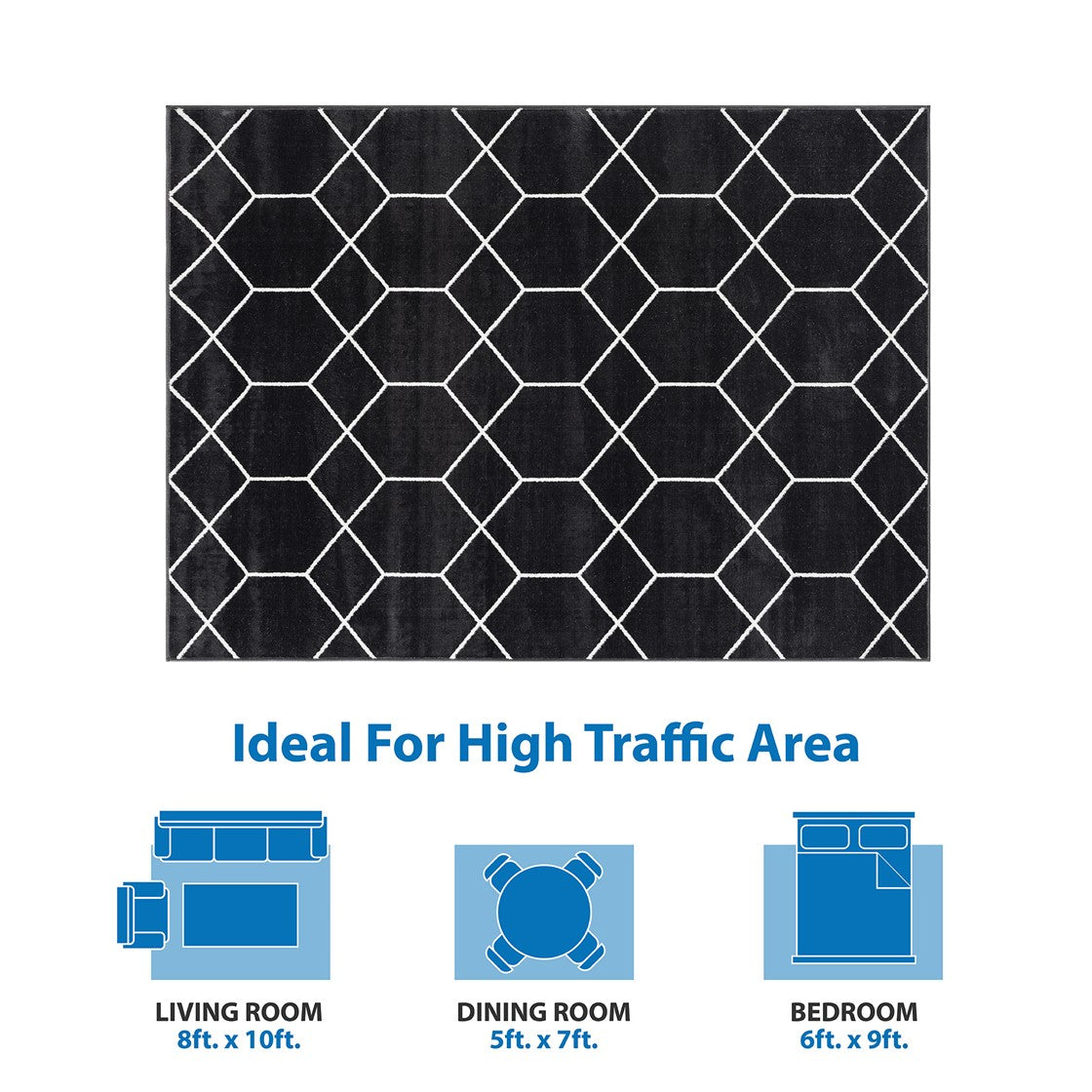 - Rug available in multiple sizes; perfect for living room, family room, or other room decor