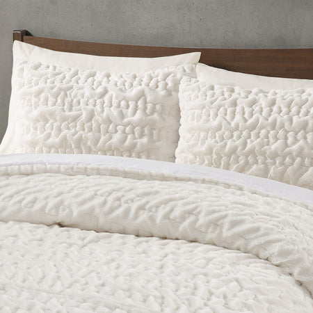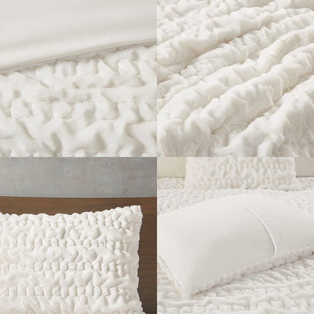 Blair Ruched Fur Down Alternative Comforter Set - Ivory - Full Size / Queen Size