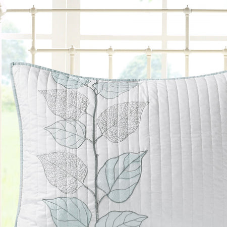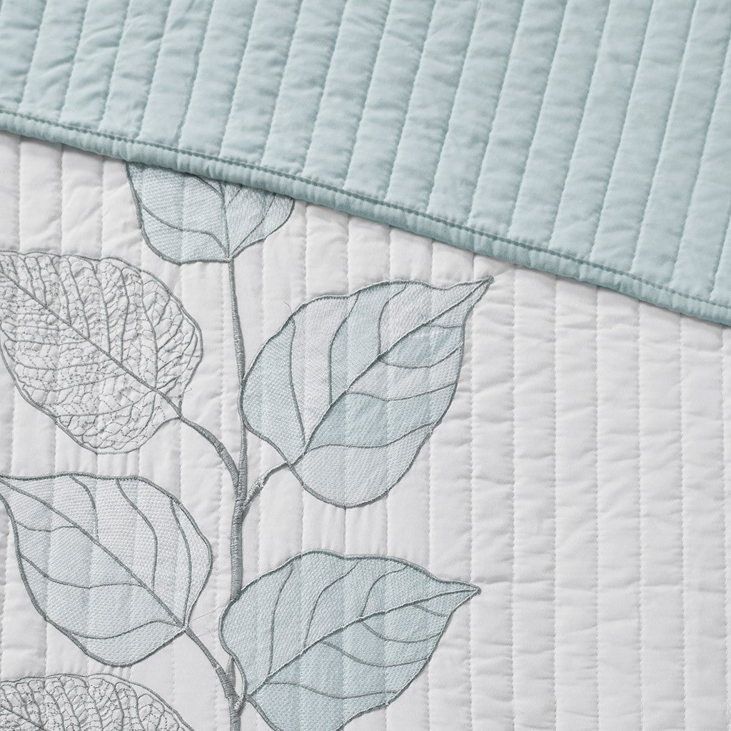- Full/Queen fearures 2 columns of leaf embroidery, King/Cal King fearues 3 columns of leaf embroidery