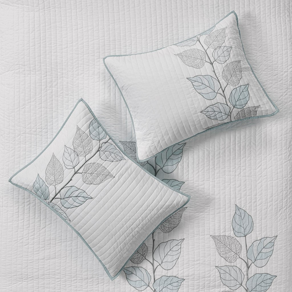 Caelie 6 Piece Embroidered Quilt Set with Throw Pillows - Blue - Full Size / Queen Size
