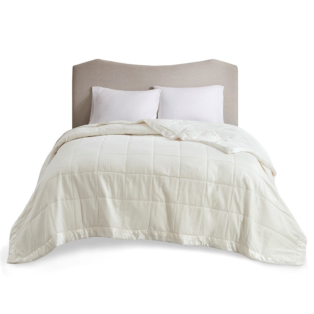Cambria Oversized Down Alternative Blanket with Satin Trim - Ivory - Twin Size