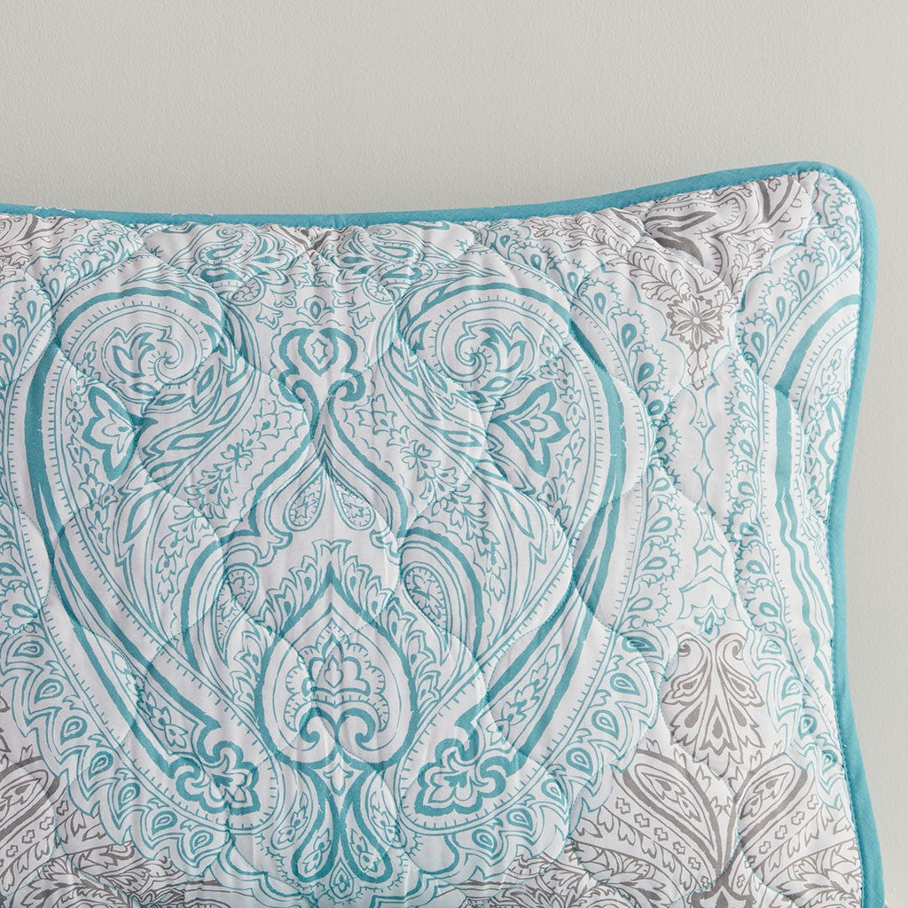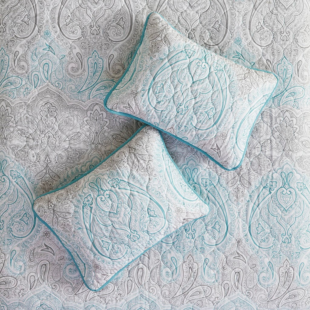 The Madison Park Cardi 3 piece Reversible Cotton Coverlet Set offers fresh boho style update to your bedroom decor. This cotton coverlet features a repeating medallion design on the face with a teal reverse, for a charming shabby chic look. The 2 matching shams reiterate the pattern of the reversible coverlet to complete the transitional coverlet set. Machine washable for easy care, this reversible cotton coverlet is OEKO-TEX certified, meaning it does not contain any harmful substances or chemicals to ensure quality comfort and wellness. It also has an antimicrobial treatment that provides built-in freshness protection, inhibits growth of odor causing bacteria, and keeps the fabric newer, longer.