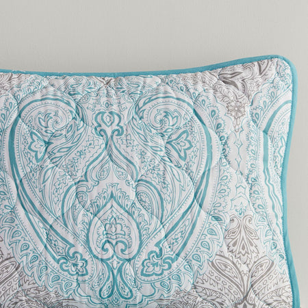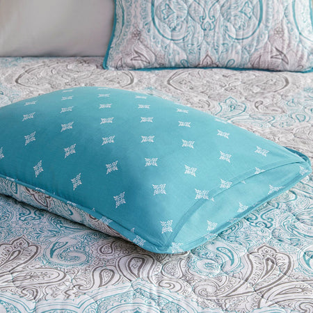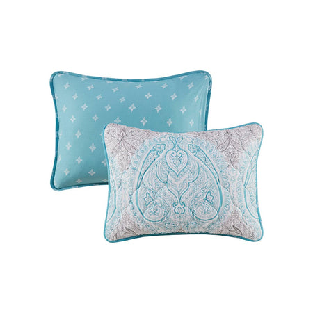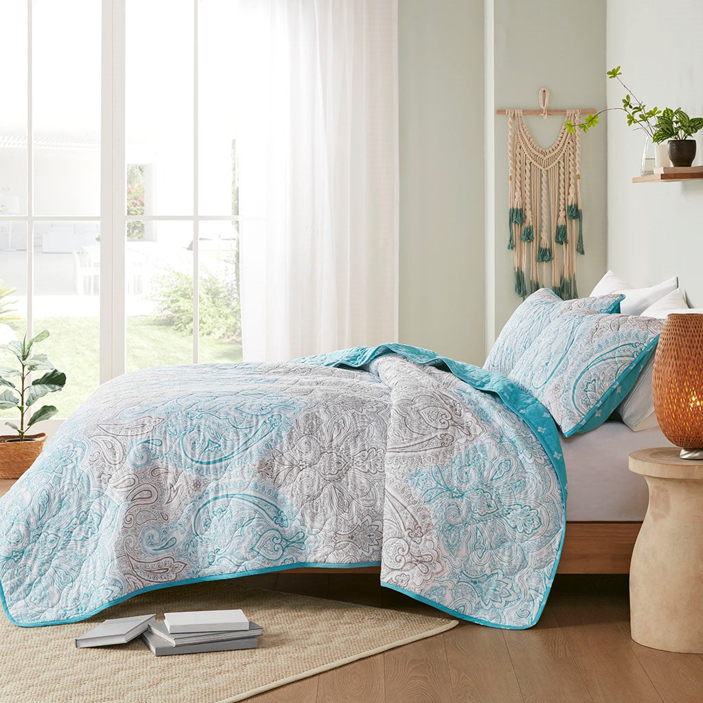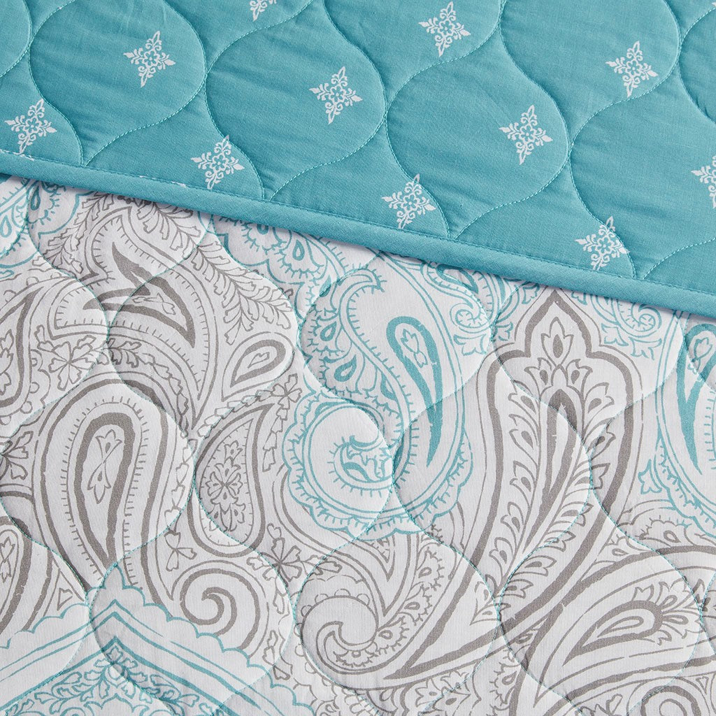 The Madison Park Cardi 3 piece Reversible Cotton Coverlet Set offers fresh boho style update to your bedroom decor. This cotton coverlet features a repeating medallion design on the face with a teal reverse, for a charming shabby chic look. The 2 matching shams reiterate the pattern of the reversible coverlet to complete the transitional coverlet set. Machine washable for easy care, this reversible cotton coverlet is OEKO-TEX certified, meaning it does not contain any harmful substances or chemicals to ensure quality comfort and wellness. It also has an antimicrobial treatment that provides built-in freshness protection, inhibits growth of odor causing bacteria, and keeps the fabric newer, longer.